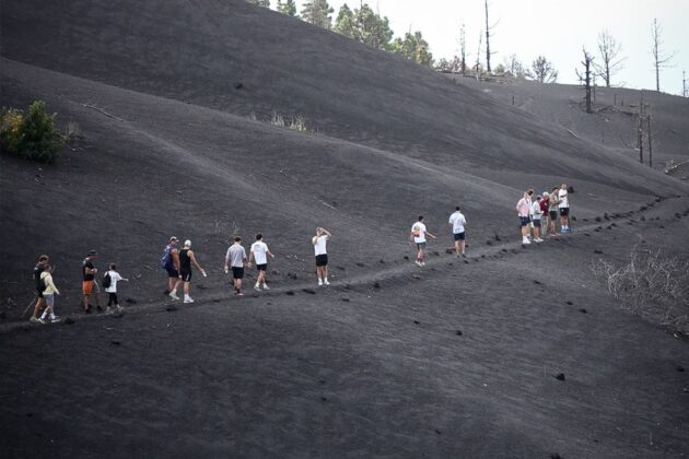 Members of Spain’s rugby sevens team explore La Palma’s natural landscapes in the Canary Islands during a break from training.